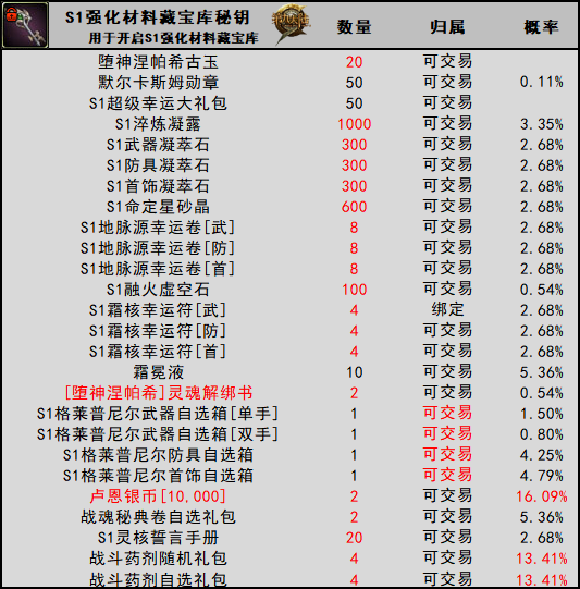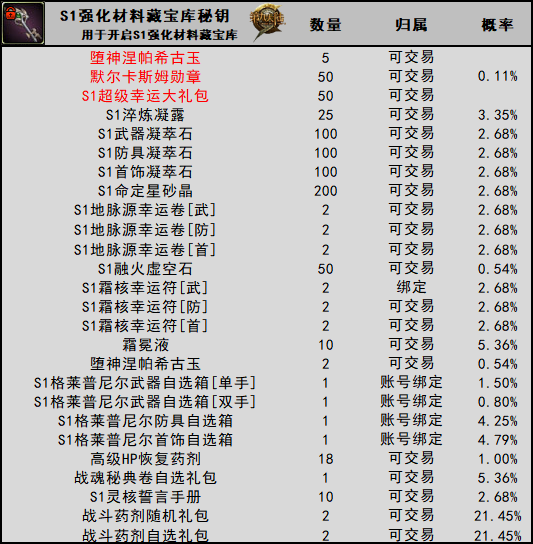 3.调整:藏宝库奖励内容及数量调整,价格从100点券修改至200点券