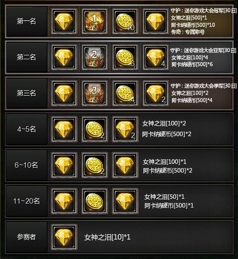 【大赛奖励资格】活动期间,参加迷你游戏,完成两局及以上、每局分数400+ 的赛局,才有资格获得迷你游戏大赛奖励。(完成单局分数400以上可以登上排行榜但并不能获得大赛奖励)
